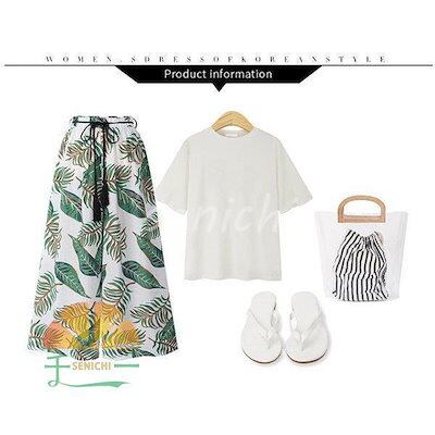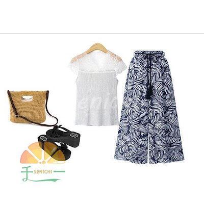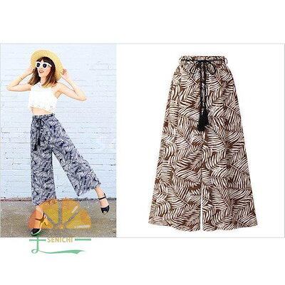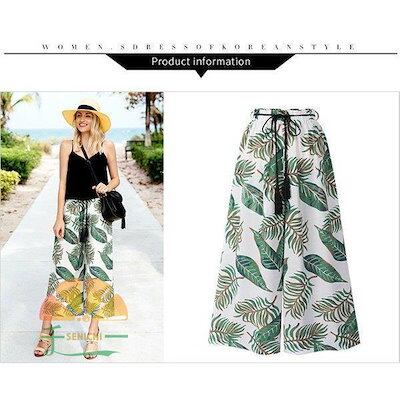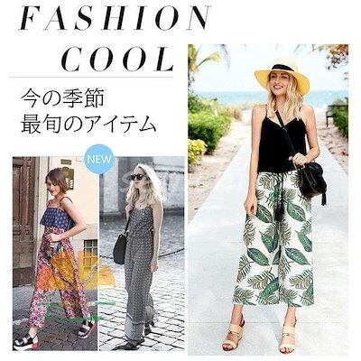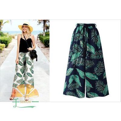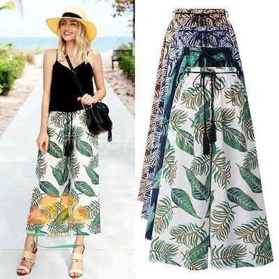 【今月限りのアクティビティ】【出荷が迅速である】ワンドパンツ レディース 春夏 ワイド ストレートパンツ九分丈 葉プリントハイウエストズボン ロングパンツ 体型カバー 着痩せ 快適 カジュアル クーポ