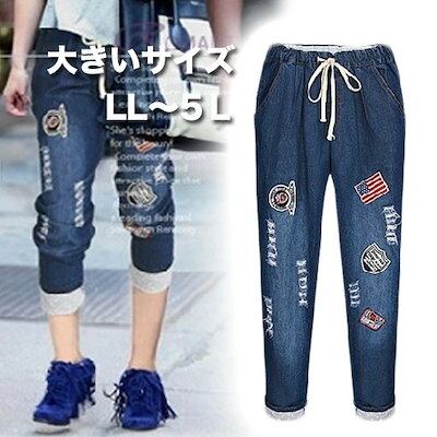 プロモーション最終日 ウエストゴムで楽々 イージーパンツ 大きいサイズ レディース クロップドパンツ デニム サマー 7分丈 パンツ クロップド サマー 夏 涼しい pants 大きいサイズ クロップ