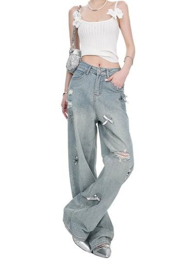 2025秋冬 韓国トレンドデニムパンツ ボトムス ジーンズ デザインファッション系スタイル ゆるダボ ジーンズ シルエット加工ゆったり レディース カジュアルコーデ 春夏 メンズライク