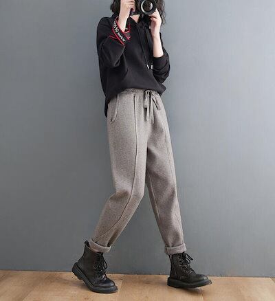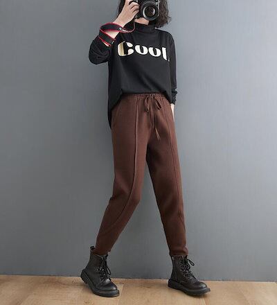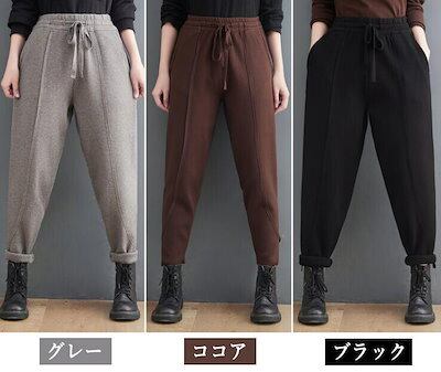 パンツ レディース 秋冬 スウェットパンツ ニットパンツ テーパードパンツ ルームウェア 部屋着 散歩 ロールアップ 伸縮性 ボトムス ハイウエスト ウエストゴム あったか 防寒 厚手