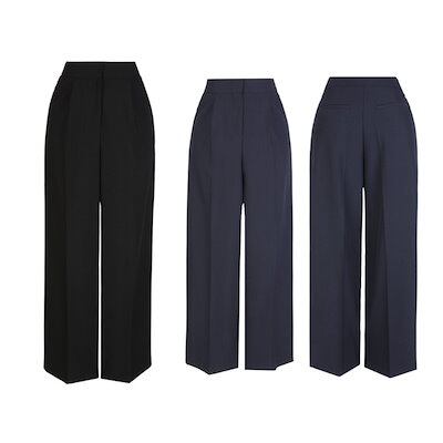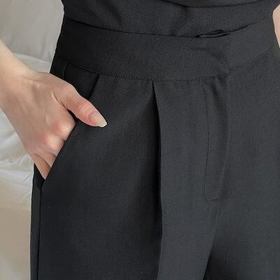 スラックス レディース ワイドパンツ タック入り センタープレス