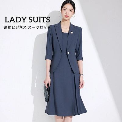 リピーター続出レディーススーツ 上品 高級感 きれいめ 無地 ワンピーススーツ 上下セット 2点セット ジャケット+ワンピース 九分丈ズボン 通勤 婚葬祭 ビジネス セレモニースーツ カジュアル 4色