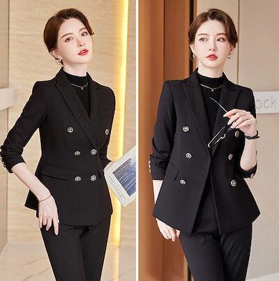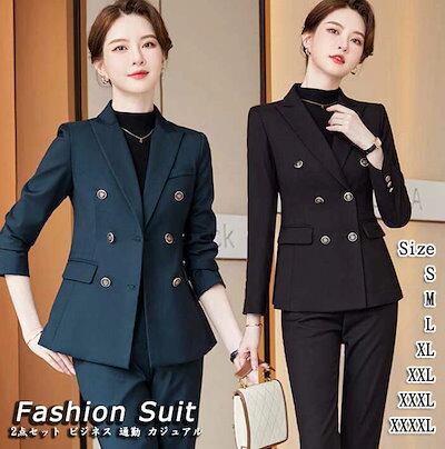 予約受付中レディーススーツ 上下セット 2点セット ジャケット ズボン セットアップ レディースジャケット パンツスーツ ダブルブレスト エレガント 通勤 ビジネス 上品 OL オフィス カジュアル