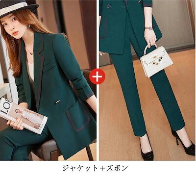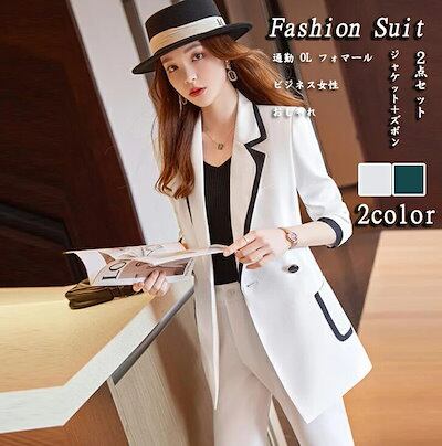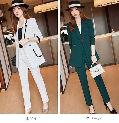 完売御礼パンツスーツ レディース 女性スーツ ビジネス OL 通勤 スリム 2色 グリーン ホワイト ジャケット ズボン 2点セット レディーススーツ スーツセット フォマール 20代 30代 40代