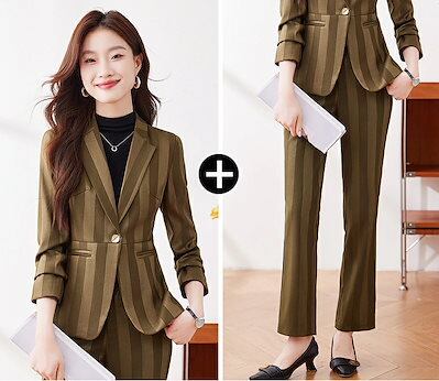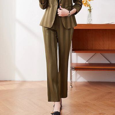 大好評 上質 高級感 ファッション レディーススーツ コーヒー 長袖上着 ロングパンツ 2点セット S/M/L/XL/2XL/3XL/4XL 背広トップス ジャケット ズボン 通勤 職業服 紳士服 高