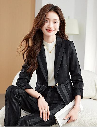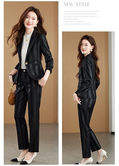 【激安販売】上質 高級感 ファッション レディーススーツ ブラック 長袖上着 ロングパンツ 2点セット S/M/L/XL/2XL/3XL/4XL 背広トップス ジャケット ズボン 通勤 職業服 紳士服