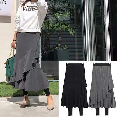 秋 冬 気質 高級感 キュロットパンツ レギンス 裏起毛 フェイクレイヤード フィッシュテールスカート 美脚 着痩せ スカート