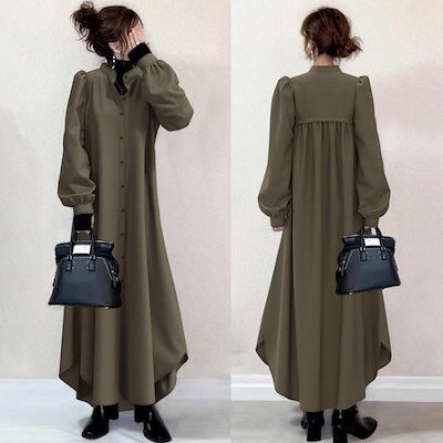 秋 冬 ロングワンピース レディース シャツワンピース 気質着痩せ 厚手 保温 レディースファッション 長袖 ワンピース
