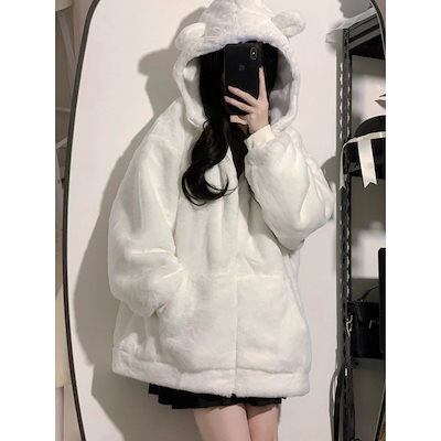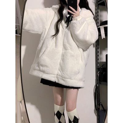 ジャンパ一・プルソン秋 冬 アウター コート 裏起毛 保温 可愛い フード付き フェイクレイヤード ジャケット コート ゆったり アウター レディース