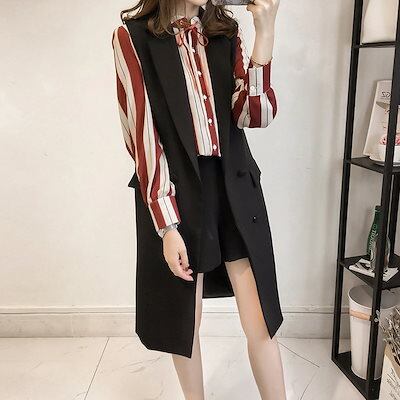 ジャンパ一・プルソンレイヤードトップススーツ ベスト カーディガン セミロング スリム見え 大サイズ ノースリーブ