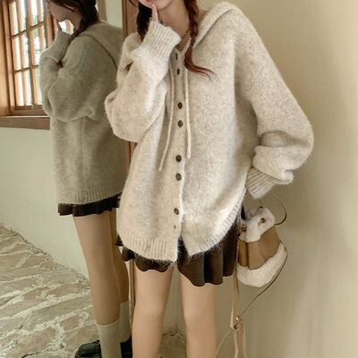 人気なリプニット フード付きセーター レディース 秋 冬 カジュアル ゆったり 百掛け ニット アウター トップス 韓国ファッション