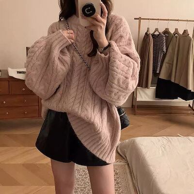 人気なリプニット セーター 秋 冬 カジュアル ゆったり 百掛け ニット アウター トップス 韓国ファッション