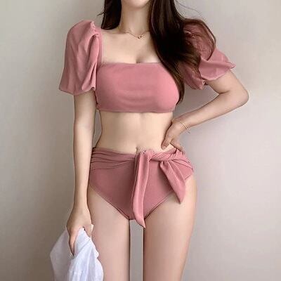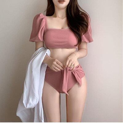 レディース 体型カバー 7月ファッション水着 2点セット ピンクスクエアネックビキニ 女の子 水着 レディース 可愛い 大きいサイズ 大人用 水着 体型カバー ラッシュガード スクール