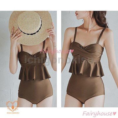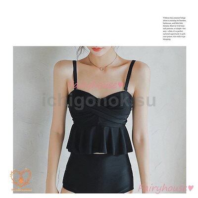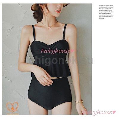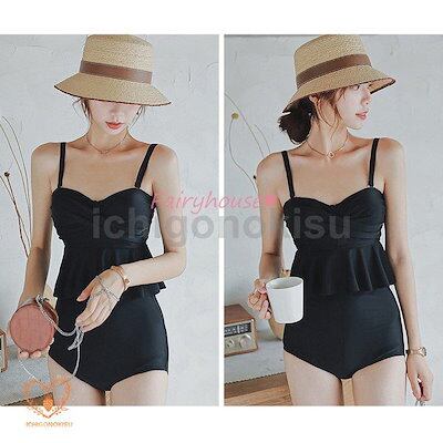 ビキニ水着レディース 夏 ビキニ2点セット水着 体型カバー 韓国風 ハイウエスト 黒フレア水着 小胸バンドゥビキニ 水着 セパレート 40代 可愛い スイムウェア 女の子 水着 レディース 可愛い 大