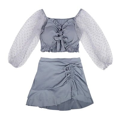 2色 水着 ドット 透け感 セクシー タンキニ ミニ ショート丈 シック カッコイイ 体形カバー ツーピース 2点セット 大人 お姉さん イイ女 スタイルアップ モテ レディース ブラック グレー 黒