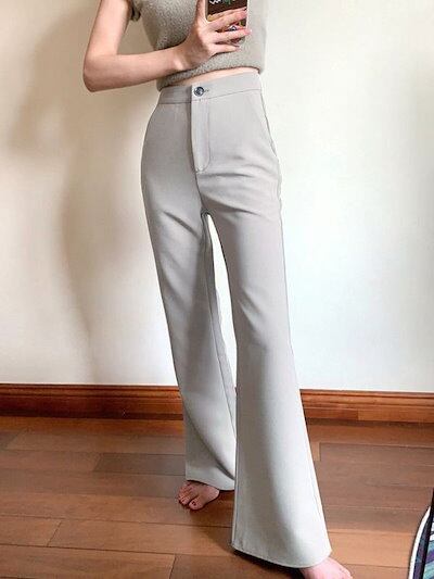 人気スラックスパンツ グレー ワイドパンツ レディース 2025春 新しいスタイル 薄手 カジュアル スーツのズボン
