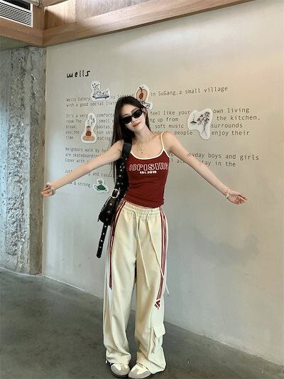 2024 秋 パンツ ロング丈 ハイウエスト ズボン 美脚効果 脚長効果 細見えサイド 冬 春 おしゃれ かわいい 韓国系ファッション レディース お出かけ トラック