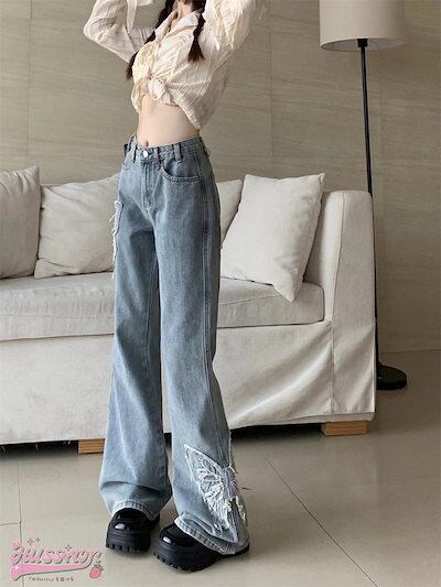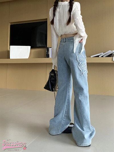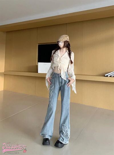 ハイウエスト フリンジ デニムパンツ ボトムス レッグ ゆるダボ ジーンズ ゆったり カジュアル ストリート 切りっぱなしカットオフ 加工 肌見せ ジーパン ファッション 秋 冬 春 スタイルアップ