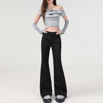 デニムかっこいい!スラックスパンツ2025春 マイクロラッパ デニムパンツ おしゃれ パンツ レディース 垂れ感 ワイドパンツ アメリカン ゆったり見えやせ カジュアルパンツ