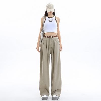 デニムかっこいい!スラックスパンツ2025春 しわだらけのワイドパンツ デニムパンツ おしゃれ ハイウエストゆったり見えやせ パンツ レディース