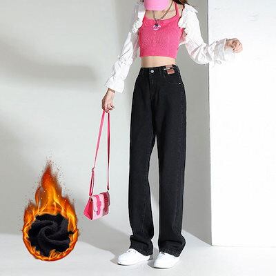 【2枚購入で 2oo円OFF!】レディースジーンズ 裏起毛 厚手 暖かい ハイウエスト ロングパンツ デニムボトムス ロングデニム スキニーパンツ ワイドパンツ 裏起毛ファッション デニムパンツ