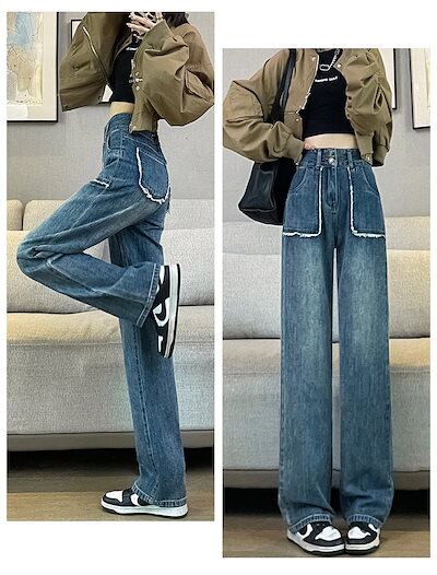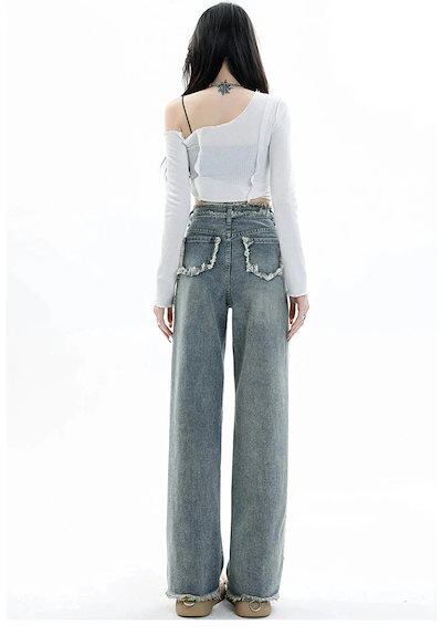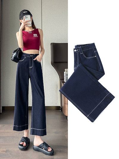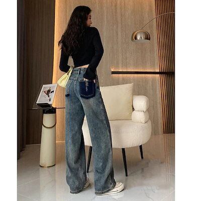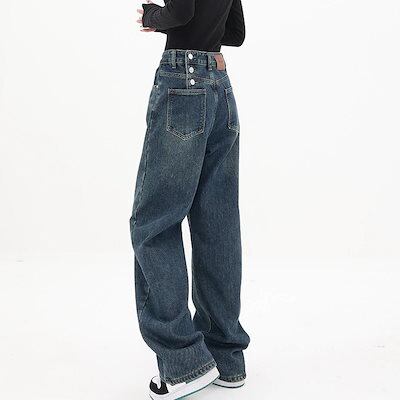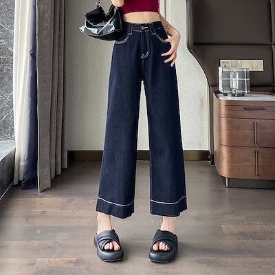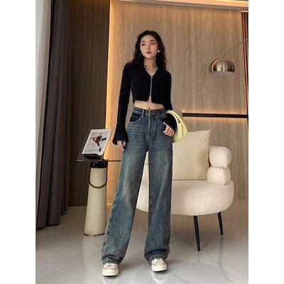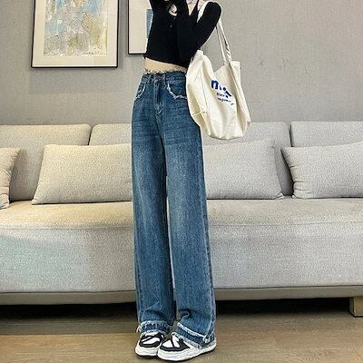 【短/長2タイプ】人気 デニムパンツ レディース ゆったり ワイド ハイウエスト フレア ダメージ 大きいサイズ レディースロングパンツ ストレート ストレッチ スキニー ジーンズ け メガ割