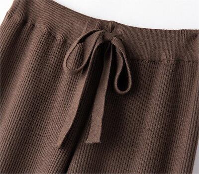 【2枚購入で 3oo円OFF! 】ニットロイワイドパンツ タイプ レディースパンツ カジュアル ラシャズボン ズボン 九分丈パンツ ストレートパンツ 韓国 脚長効果!スキニーパンツ ひんやりボトムス