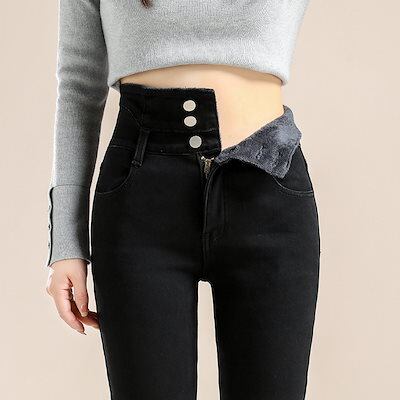 デニムパンツスキニーパンツ 3段ブレスト タイト 裏起毛 デニムパンツ ジーンズ レディース ファッション 着痩せハイウェスト 秋 冬 スキニーパンツ スラックスパンツ お ズボン 脚長効果!スキニー