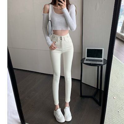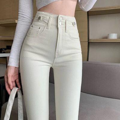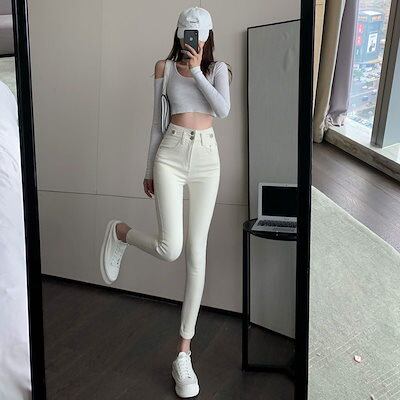 脚長効果!スキニーデニムパンツ女性春夏新作新スリムハイウエストスリムストレッチレッグペンシルパンツ レディース 韓国ファッション