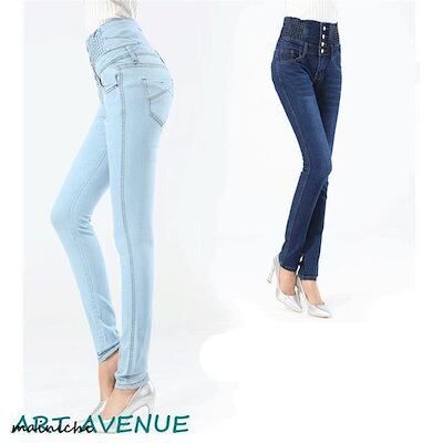 スキニーパンツ デニム ジーンズ ストレッチ ロング丈 レディース ボトムス パンツ スキニー デニムパンツ ハイウエスト着痩せ 美尻