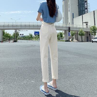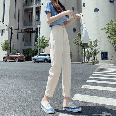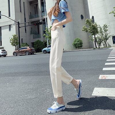レディース 夏 デニムパンツ ストレート ハイウエスト ひんやりボトムス カジュアル ワイドパンツ ロングパンツ デニムジーンズひんやりボトムス