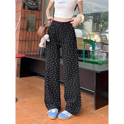 新型の黒い波点のストレートジーンズ女性韓国版カジュアルハイウエストがゆったりしていて痩せています