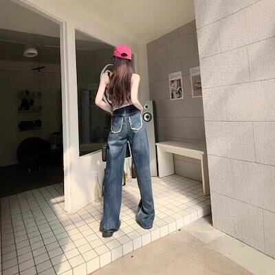 デザイン感小衆高腰ジーンズの新型女装復古は古い直筒ゆるい広脚ズボンを作る