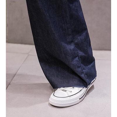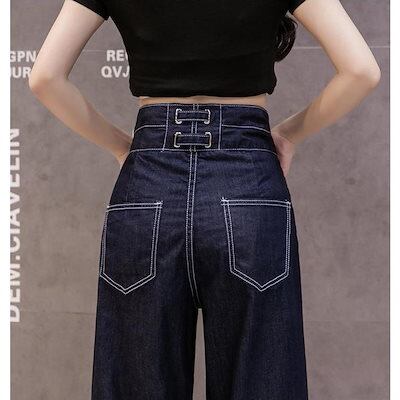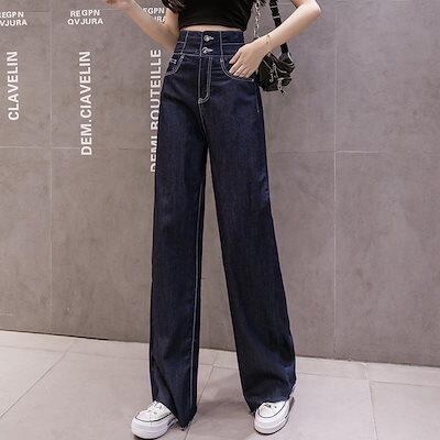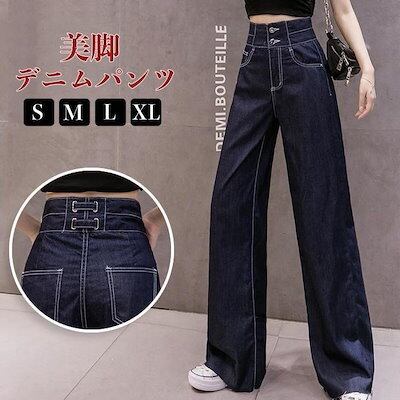 デニムパンツジーンズロングパンツレディース女性ボトムスセミワイドデニムフレアデニムハイウエスト脚脚長効果ジーパン長ズボン無
