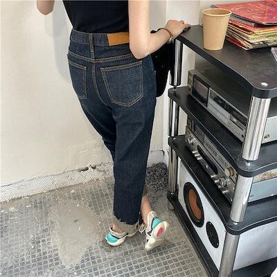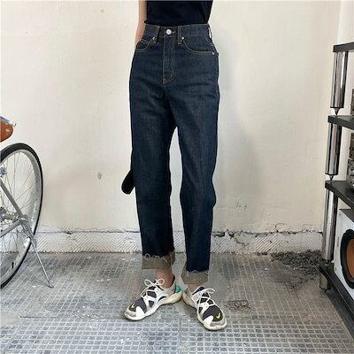 Chio'2ndデニムパンツジーンズレディースボトムスストレートロング丈長ズボンカットオフカジュアルラフおしゃれかっこいい