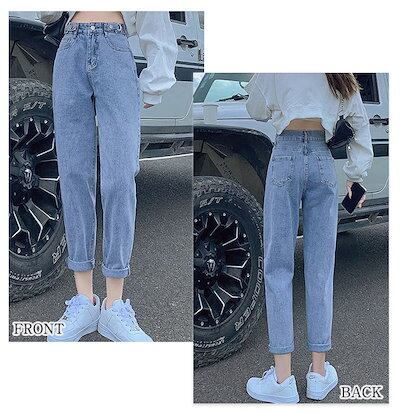 デニムパンツ レディース ジーンズ ズボン ボトムス ハイウエスト 9分丈 調節可 カシュアル 体型カバー ゆったり 美脚