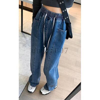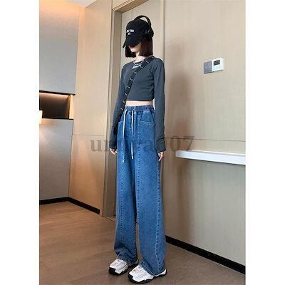 新作 デニムガウチョ ワイドデニム ワイドパンツ ガウチョ レディース ジーンズ デニムパンツ 大きいサイズ ハイウエスト ウエストゴム 体型カバー