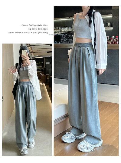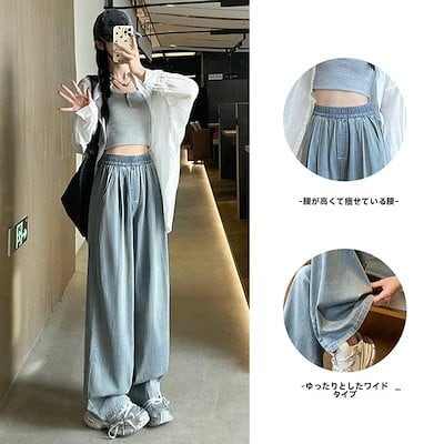 25新作 シンプル 大きめサイズ 接触冷感 uvカット デニムパンツ ジーンズ ズボン デニムボトムス レディース ワイドパンツ ゆったり ハイウエスト レトロ