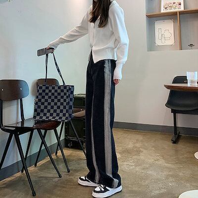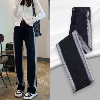 2024 新作 韓国 流行り おしゃれ 魅力を増すコツ デニムパンツ 夏 ロングパンツ ストレート グラーデション コントラストカラー ワイドパンツ 切り替え 百掛け 着やせ ハイウエスト スリム ジ
