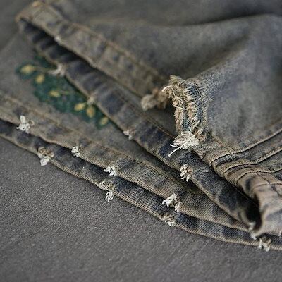 花柄刺繍 サルエルパンツ デニムパンツ ワイドパンツ バギーパンツ ガウチョパンツ レディース ウエ