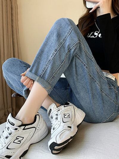 アメリカのナシ型の体の弾力性のあるハーレムジーンズの女性の大きいサイズの新型の太ったmmの腰がゆったりしていてやせているお父さんのズボンが湿っています