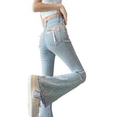 ラッパのズボンの女性の冬の大衆の設計は腰が高くて弾力性が高くて痩せています