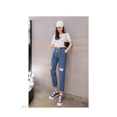 テーパードパンツ レディース 着痩せ デニムパンツ ロング丈 人気 上品 ワイドパンツ デニム カジ