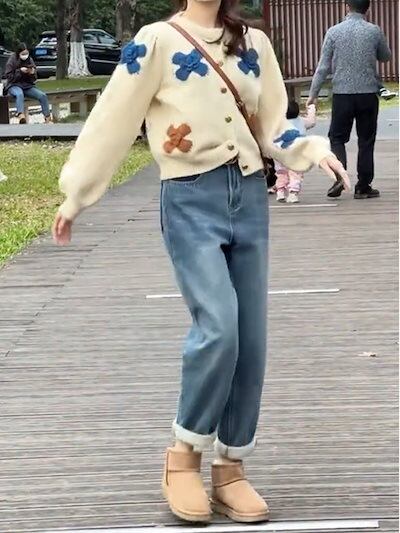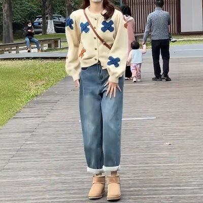刺繍ハロン大根ジーンズ女性秋冬新型梨型スタイルおじさんズボン