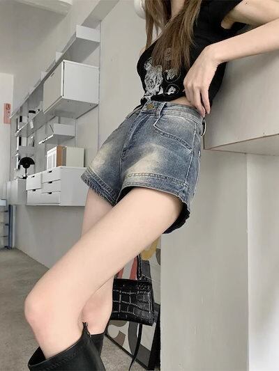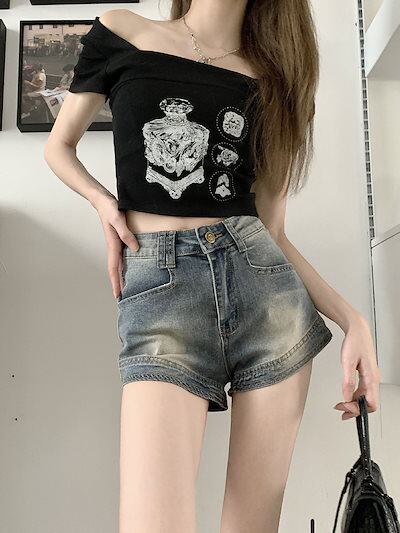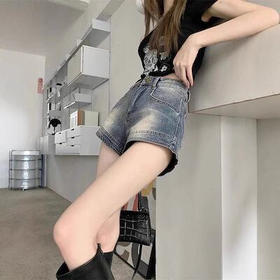 【 迅速な出荷 】脚見せ ショートパンツ 夏 レトロ薄手アウターハイウエストタイトストレッチa字超短め ハーフパンツ レディース ショーツ 韓国ストリートファッション デニムパンツ