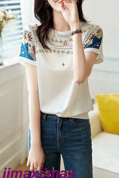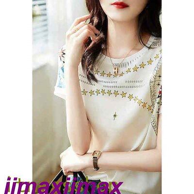 Tシャツ レディース 40代 春夏新作 オシャレブラウス 白レションTシャツ 半袖トップス プリントTシャツ 大人 通勤 ゆったりTシャツ カットソー 30代 50代