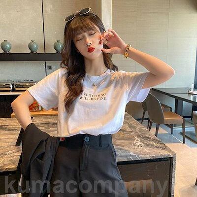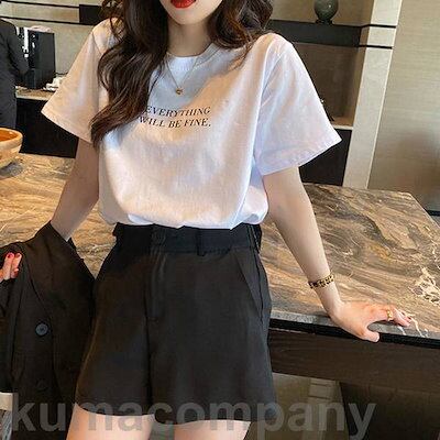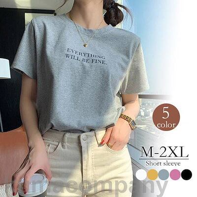 トップス レディース Tシャツ ロゴ 春 大きいサイズ 夏 半袖 カジュアル おしゃれ ゆったり カットソー 薄手 プリント 黒 白 M-2XL
