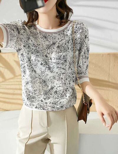 ブラウス レディース 40代 春夏 オシャレブラウス シフォンブラウス おしゃれ プリント 上品 Tシャツ 半袖トップス カジュアル 通勤 ゆったりTシャツ 30代 50代 送料無料