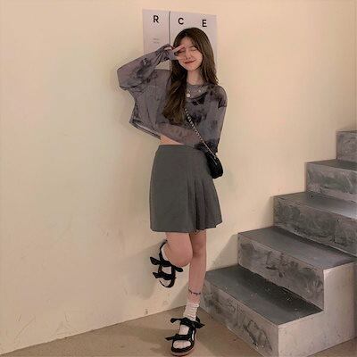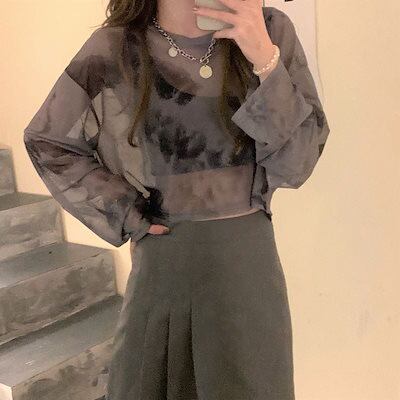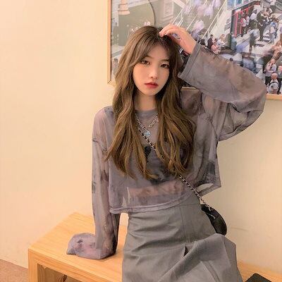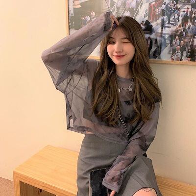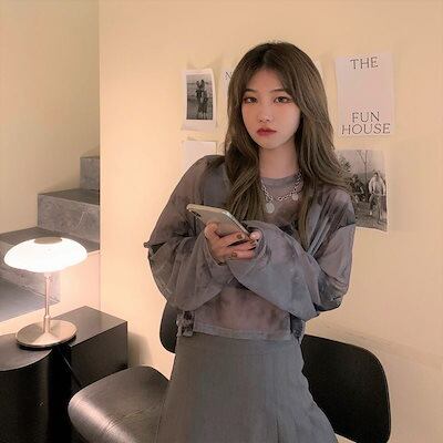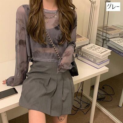 薄手 韓国系 肌見せ 長袖 レディース レイヤード 24 T トップス 薄手フィット丈 ショート プリント 女っぽハイフレンチタイト tシャツ 女度を格上げ 重ね着 ファッション