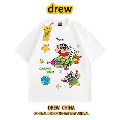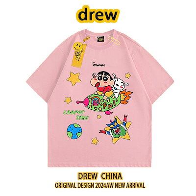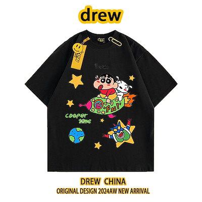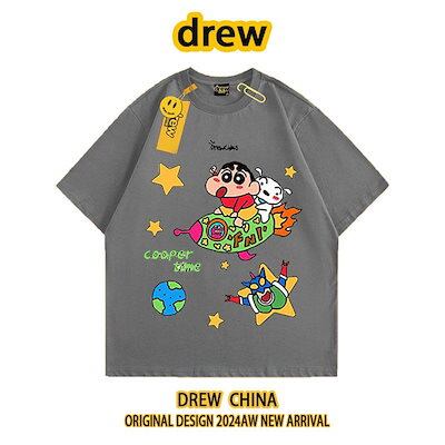 Drew潮牌クレヨンしんちゃん漫画プリント重ポンド半袖tシャツ男女カジュアルゆったりカップル半袖上着